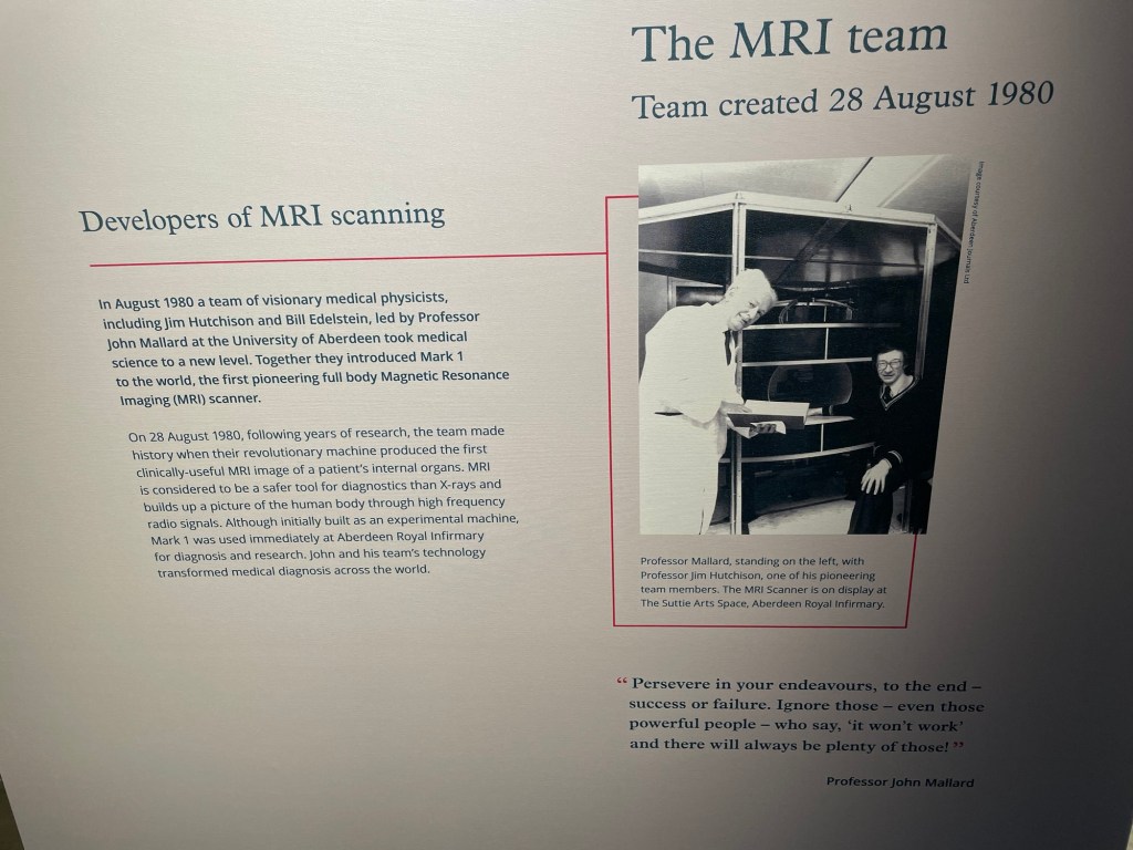 A very cool museum in the Aberdeen city center – with salutes to famous Aberdonians. They made the first MRI scanner here! (And interestingly made their own iron lung after seeing one in America …)