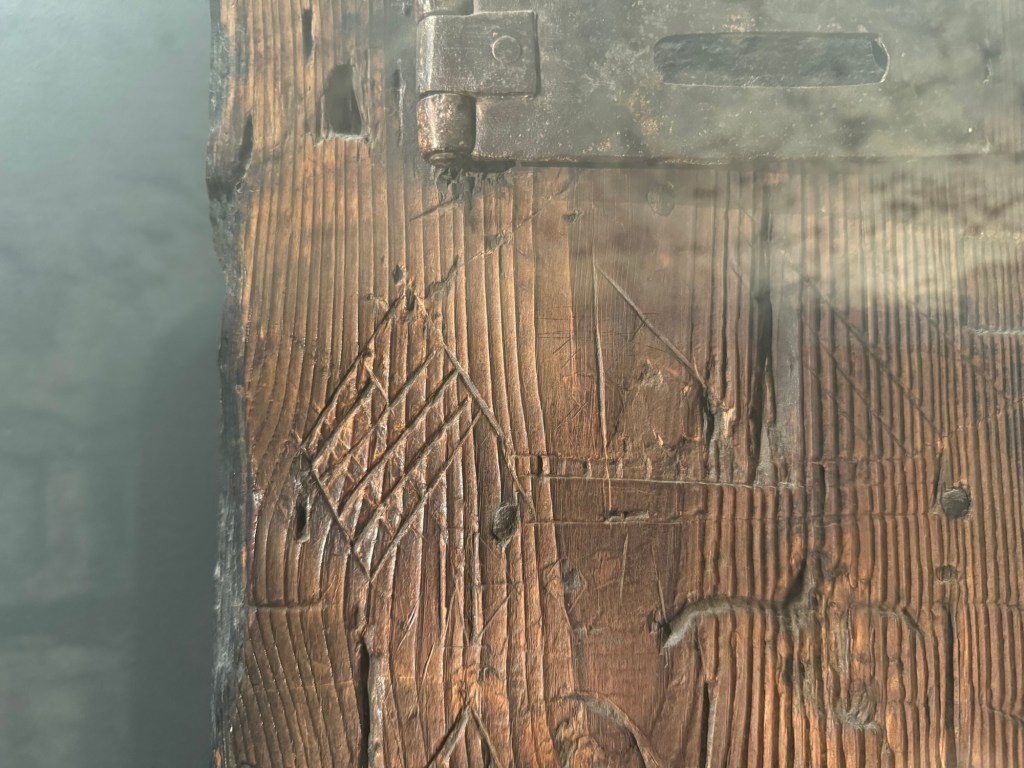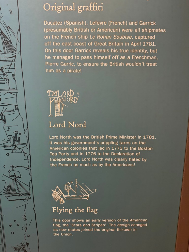 American flag graffiti carved into prison door at Edinburgh Castle